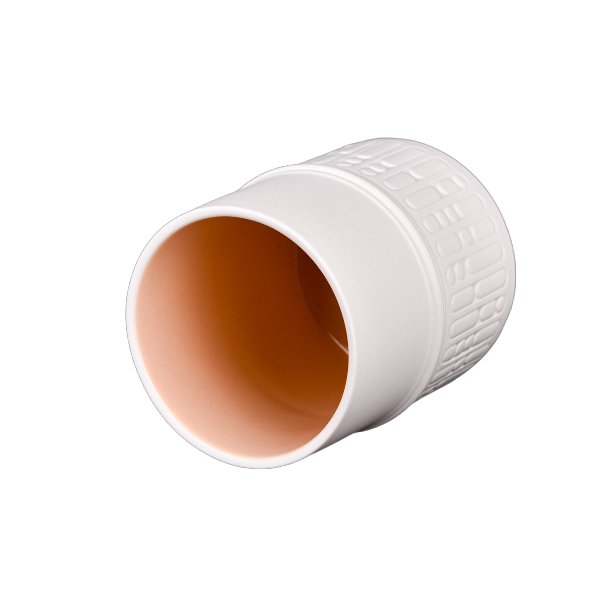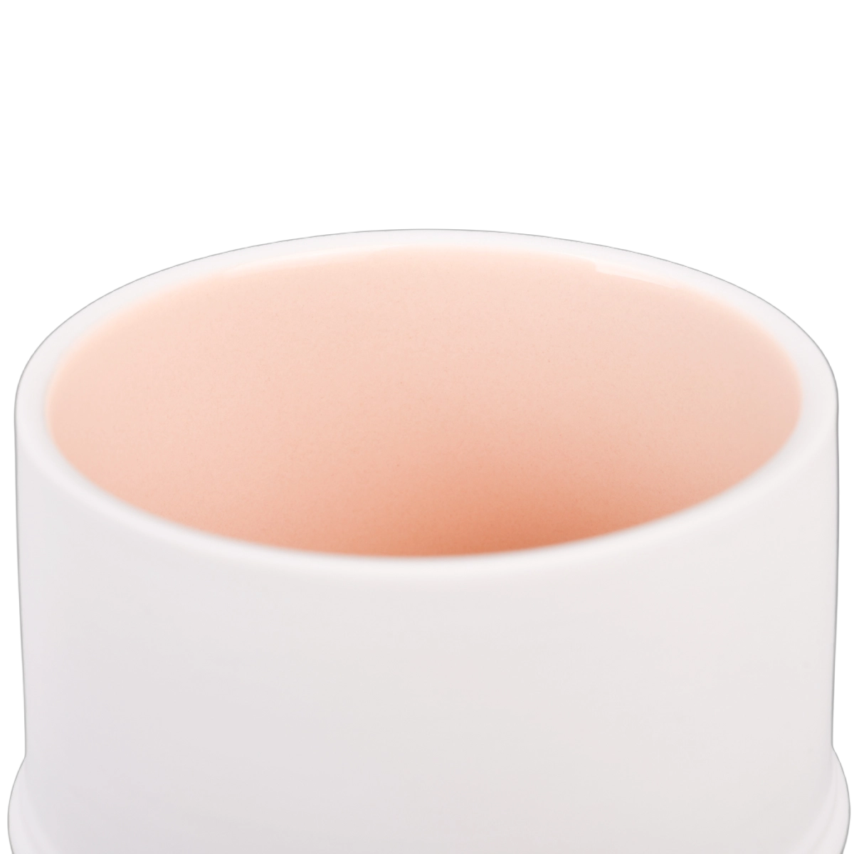 This ceramic candle holder with a lid circular porcelain lid fits perfectly with the mouth of the jar. A small raised knob is designed on the top, making it easy to open and close. When the lid is opened, a soft pink glaze can be seen on the inside, creating a gentle contrast with the plain white exterior. When a candle is lit, the light halo passes through the pink inner wall, adding a touch of romantic warmth.